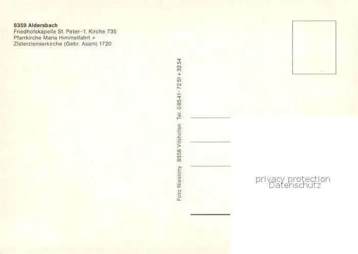 Aldersbach Friedhofskapelle Sankt Peter Pfarrkirche Mariae Himmelfahrt Aldersbach postalisch nicht gelaufen nach 1965 Erhaltung siehe scans [KathaD81] Kathoren