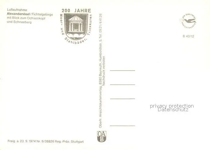 Alexandersbad_Bad Fliegeraufnahme mit Ochsenkopf und Schneeberg Alexandersbad_Bad postalisch nicht gelaufen nach 1965 Erhaltung siehe scans [WerneD78] WernPID7