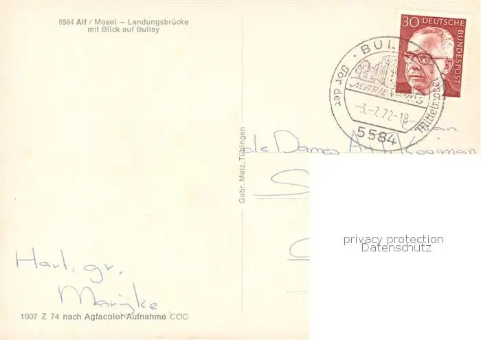 Alf_Mosel Landungsbruecke mit Bullay Alf_Mosel postalisch gelaufen 1972 Erhaltung siehe scans [LiesaD40] LiesID40