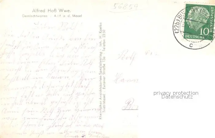 Alf_Mosel Spinnerei Aussenansicht Alf_Mosel postalisch gelaufen 1957 Erhaltung siehe scans [LiesaD40] LiesID40
