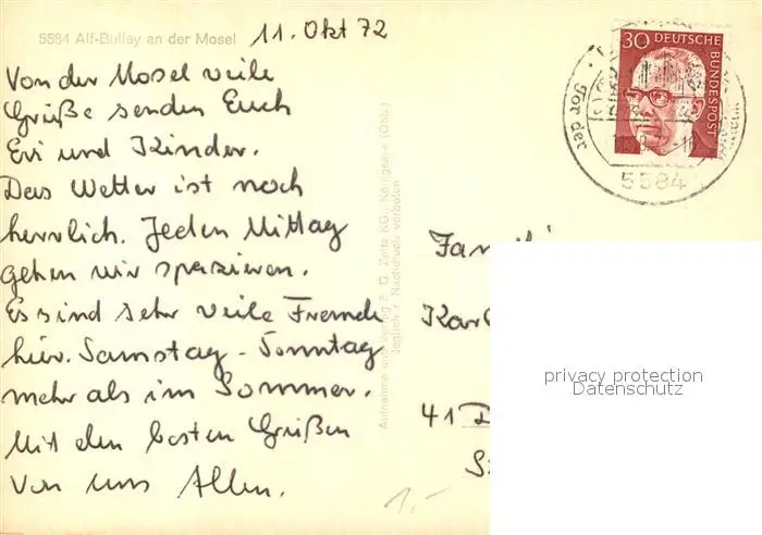Alf_Mosel mit Bullay Moselbruecke Weinberge Alf_Mosel postalisch gelaufen 1972 Erhaltung siehe scans [FriedD77] Frierer