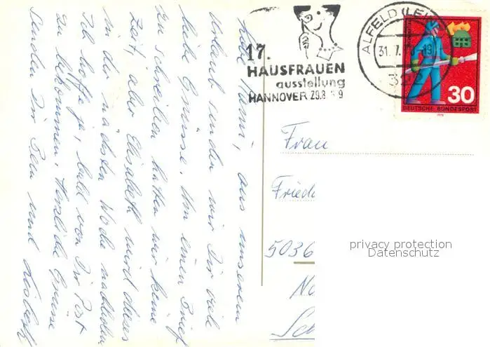 Alfeld_Leine Leinstrasse Gymnasium Postamt Heimatmuseum Leinebruecke Fillerturm Freibad Kaufm. Berufsschule Alfeld_Leine postalisch gelaufen nach 1965 Erhaltung siehe scans [LiesaD40] LiesID40
