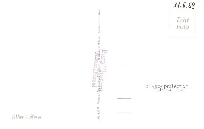 Alken_Koblenz Partie an der Mosel Alken_Koblenz postalisch nicht gelaufen 1959 Erhaltung siehe scans [WerneD78] WernPID7