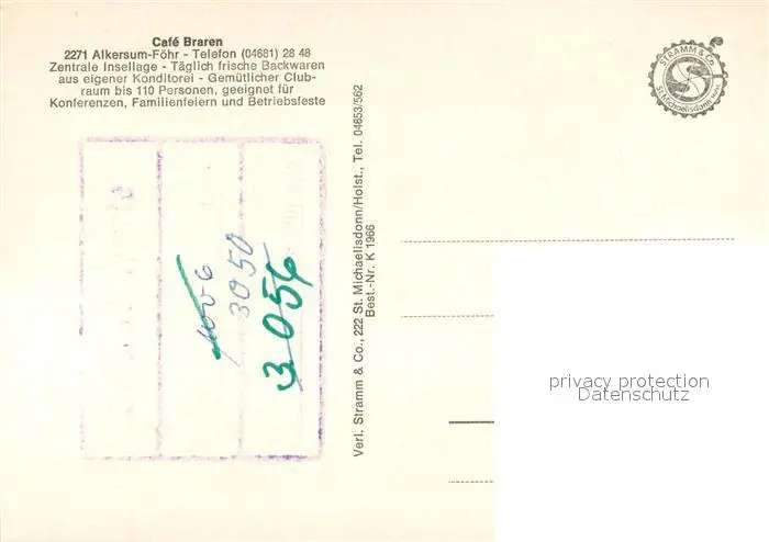 Alkersum Cafe Baren Alkersum postalisch nicht gelaufen nach 1965 Erhaltung siehe scans [LiesaD40] LiesID40