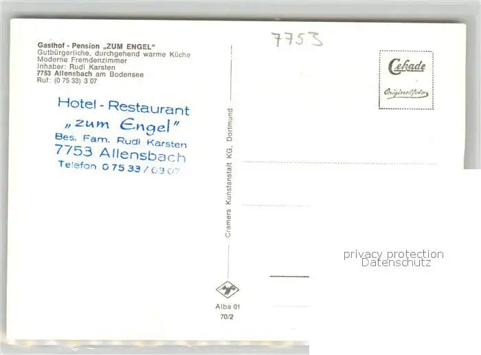 Allensbach_Bodensee Gasthof Pension Zum Engel Allensbach_Bodensee postalisch nicht gelaufen nach 1965 Erhaltung siehe scans [KathaD81] Kathoren