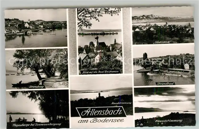 Allensbach_Bodensee Strand Hegauberge Insel Reichenau Abendstimmung Saentisblick Strandbad Allensbach_Bodensee postalisch nicht gelaufen 1921-1965 Erhaltung siehe scans [FriedD77] Frierer