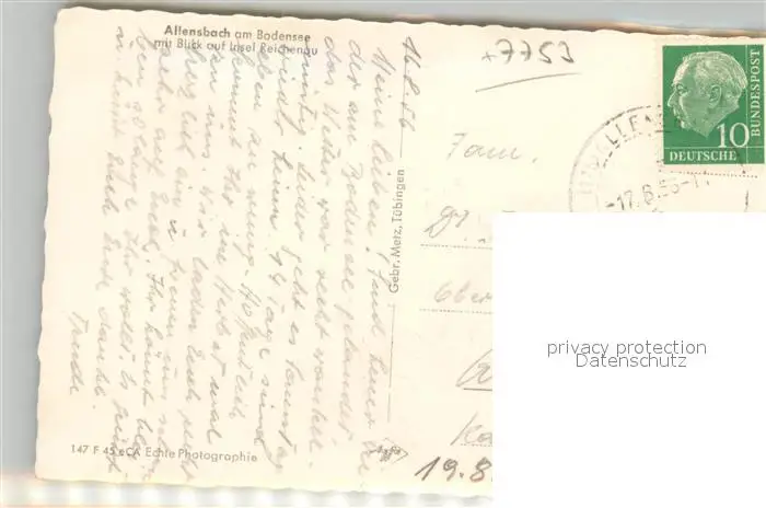 Allensbach_Bodensee mit Blick auf Insel Reichenau Allensbach_Bodensee postalisch gelaufen 1956 Erhaltung siehe scans [FriedD77] Frierer