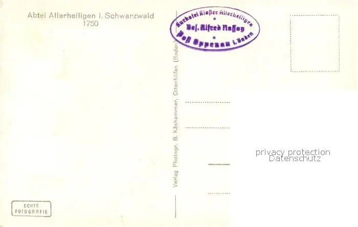 Allerheiligen_Oppenau Ansicht Abtei 1750 Allerheiligen_Oppenau postalisch nicht gelaufen 1921-1965 Erhaltung siehe scans [KathaD81] Kathoren