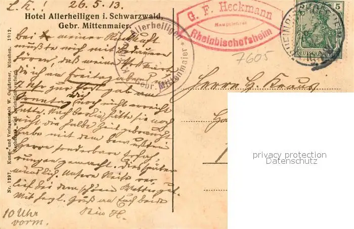 Allerheiligen_Oppenau Hotel Allerheiligen Schwarzwald Allerheiligen_Oppenau postalisch gelaufen 1913 Erhaltung siehe scans [FriedD77] Frierer