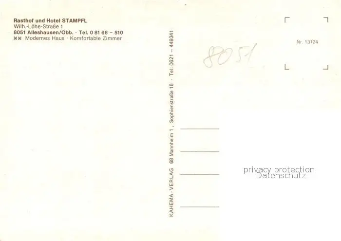 Alleshausen Rasthof und Hotel Stampfl Gaststube Alleshausen postalisch nicht gelaufen nach 1965 Erhaltung siehe scans [FriedD77] Frierer