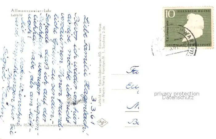 Allmannsweier Kategorie Alte Ansichtskarten Postkarten bx90910 Allmannsweier Fliegeraufnahme Allmannsweier postalisch gelaufen 1961 Erhaltung siehe scans [PaolaD17]