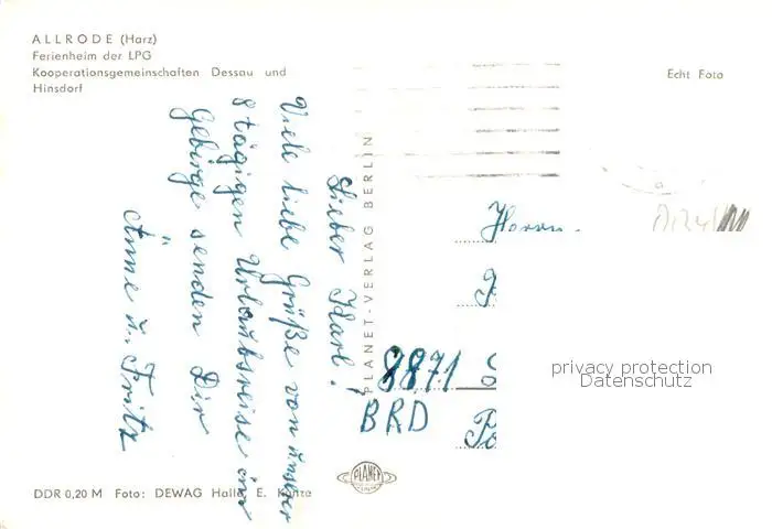 Allrode Ferienheim der LPG Allrode postalisch nicht gelaufen nach 1965 Erhaltung siehe scans [FriedD77] Frierer