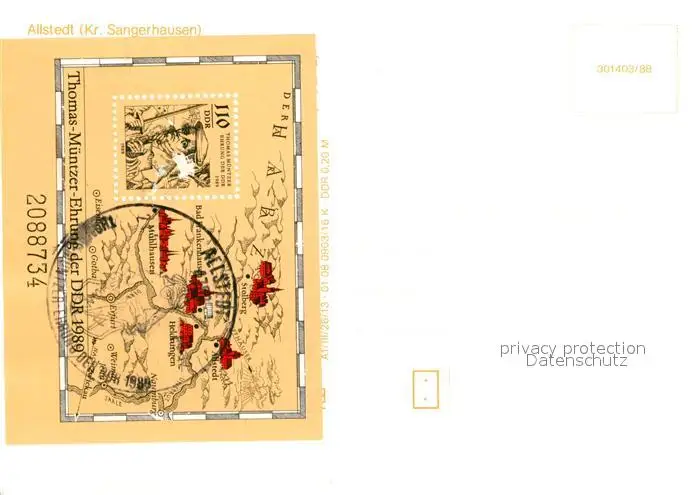 Allstedt Rathaus Wappen Saal Sondermarke Allstedt postalisch nicht gelaufen 1988 Erhaltung siehe scans [FriedD77] Frierer