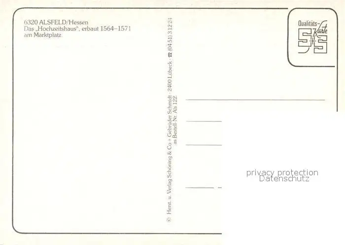 Alsfeld Hochzeitshaus 16. Jhdt. Historisches Gebaeude Marktplatz Alsfeld postalisch nicht gelaufen nach 1965 Erhaltung siehe scans [FriedD77] Frierer