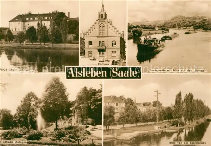 AK / Ansichtskarte Alsleben_Saale FDGB Schule Aktivist Saalepartie Staedt Anlagen Saalebruecke Alsleben_Saale