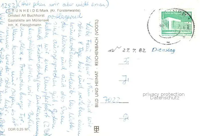 Alt-Buchhorst Gaststaette am Moellensee Alt-Buchhorst postalisch gelaufen 1982 Erhaltung siehe scans [FriedD77] Frierer
