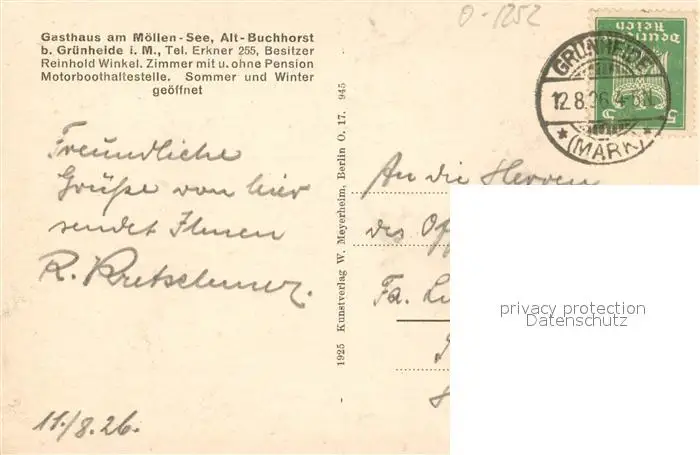 Alt-Buchhorst Waldpromenade Peetz See Alt-Buchhorst postalisch gelaufen 1926 Erhaltung siehe scans [KathaD81] Kathoren