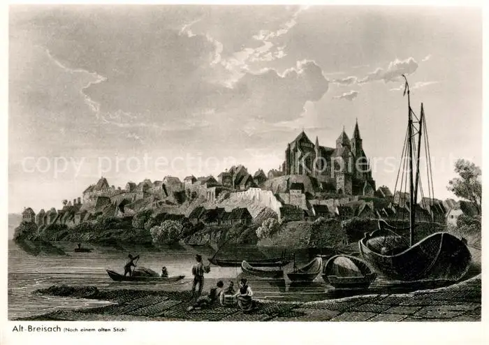 Alt_Breisach_Rhein Blick zum Muenster nach einem alten Stich Kuenstlerkarte postalisch nicht gelaufen 1921-1965 Erhaltung siehe scans [FriedD77] Frierer