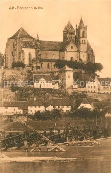 Alt_Breisach_Rhein Schiffsbruecke Muensterberg St Stephansmuenster postalisch nicht gelaufen 1914 Erhaltung siehe scans [FriedD77] Frierer