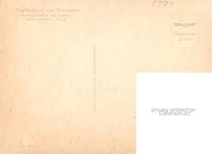 Alt_Duvenstedt Fliegeraufnahme Toepferhaus am Bistensee Alt_Duvenstedt postalisch nicht gelaufen 1921-1965 Erhaltung siehe scans [KathaD81] Kathoren