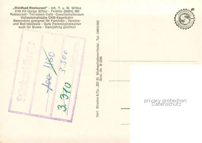 Alt_Garge Waldbad Restaurant Bodenschach Kegelbahn Freibad Alt_Garge postalisch nicht gelaufen nach 1965 Erhaltung siehe scans [FriedD77] Frierer