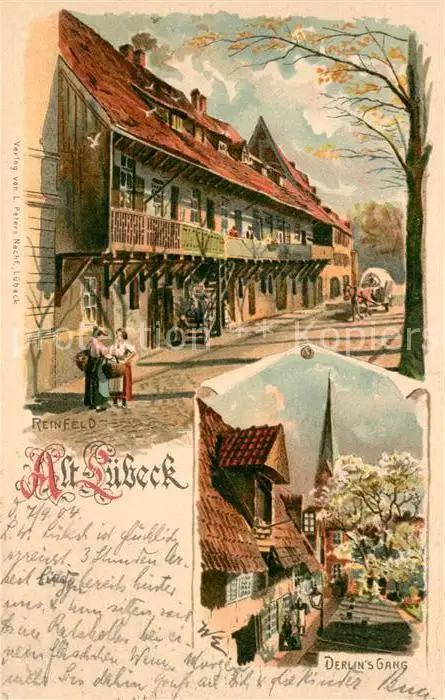 Alt_Luebeck Reinfeld Derlin's Gang Kuenstlerkarte postalisch gelaufen 1904 Erhaltung siehe scans [FriedD77] Frierer