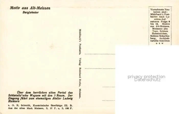 Alt_Meissen_Elbe Burglehntor Schleinitz'sche Wappen Alt_Meissen_Elbe postalisch nicht gelaufen 1921-1965 Erhaltung siehe scans [FriedD77] Frierer