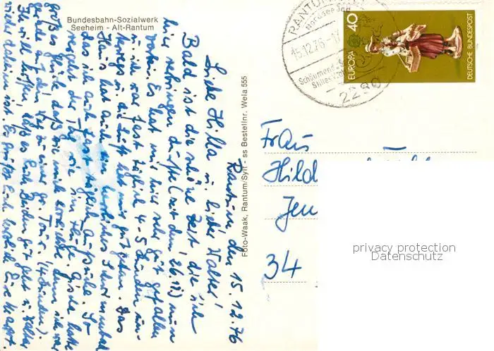 Alt_Rantum Bundesbahn Sozialwerk Seeheim Alt_Rantum postalisch gelaufen 1976 Erhaltung siehe scans [WerneD78] WernPID7