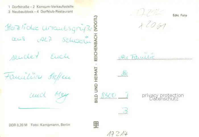 Alt_Schwerin Dorfstrasse Konsum-Verkaufsstelle Neubaublock Dorfklub Restaurant Alt_Schwerin postalisch nicht gelaufen 1980 Erhaltung siehe scans [FriedD77] Frierer