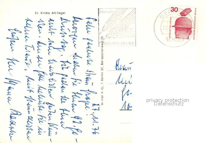 Alt_Tegel Evangelische Kirche postalisch gelaufen 1976 Erhaltung siehe scans [FriedD77] Frierer