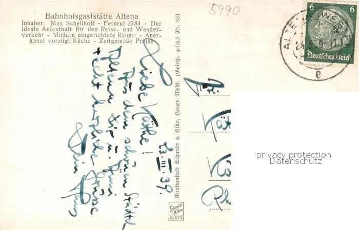 Altena_Lenne Burg Altena Altena_Lenne postalisch gelaufen 1939 Erhaltung siehe scans [WerneD78] WernPID7