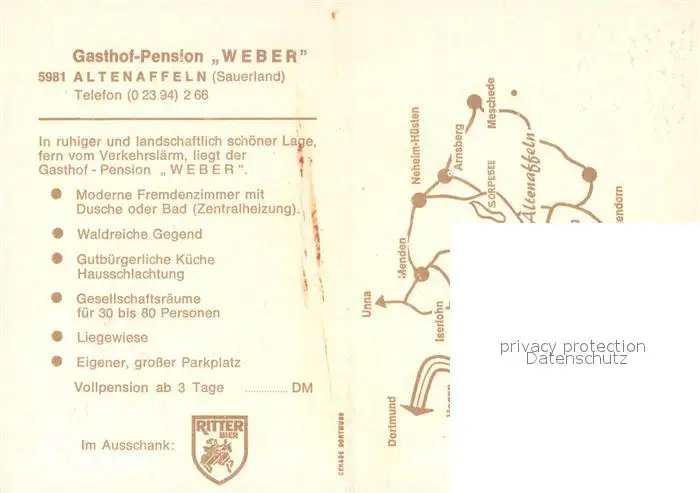 Altenaffeln Gasthof Pension Weber Gastraeume Altenaffeln postalisch nicht gelaufen nach 1965 Werbekarte (keine Postkarte) Erhaltung siehe scans [WerneD78] Werbekarte (keine Postkarte) WernPID7