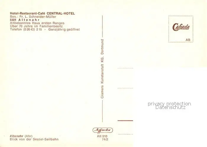 Altenahr Blick von der Sessel Seilbahn Altenahr postalisch nicht gelaufen nach 1965 Erhaltung siehe scans [KathaD81] Kathoren