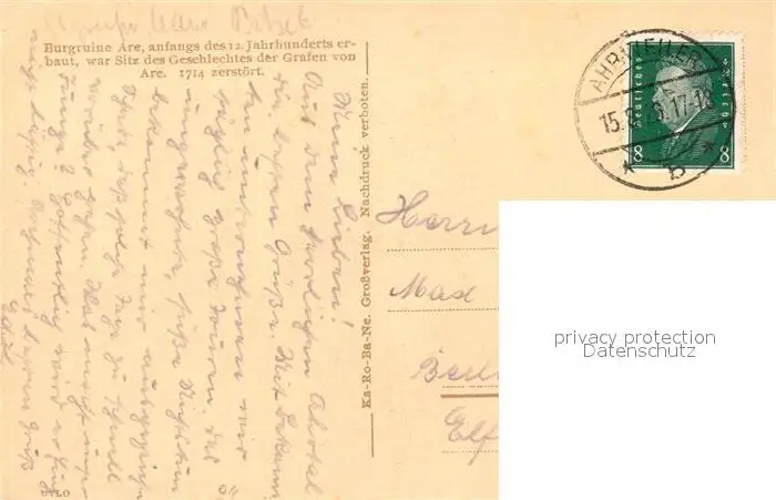 Altenahr Burgruine Are mit Viadukt Altenahr postalisch gelaufen 1929 Erhaltung siehe scans [LiesaD40] LiesID40