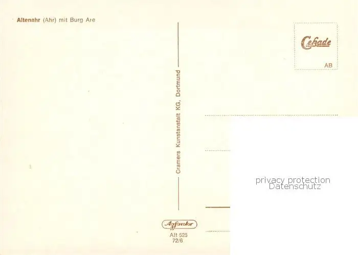 Altenahr Fliegeraufnahme mit Burg Are Altenahr postalisch nicht gelaufen nach 1965 Erhaltung siehe scans [WerneD78] WernPID7