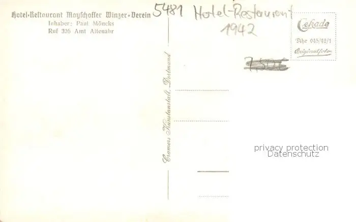 Altenahr Hotel-Restaurant Mayschosser Winzer-Verein Garten u. Tanzflaeche Altenahr postalisch nicht gelaufen 1942 Erhaltung siehe scans [LiesaD40] LiesID40