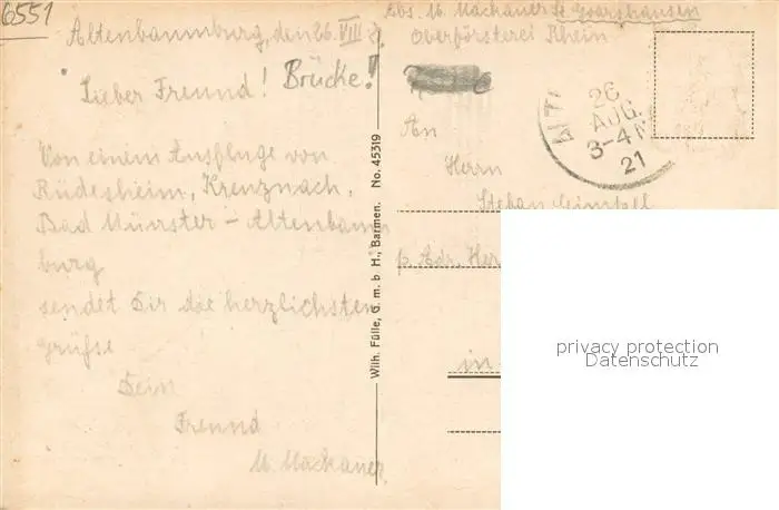 Altenbamberg Altebaumburg Ruine Altenbamberg postalisch gelaufen 1921 Erhaltung siehe scans [FriedD77] Frierer