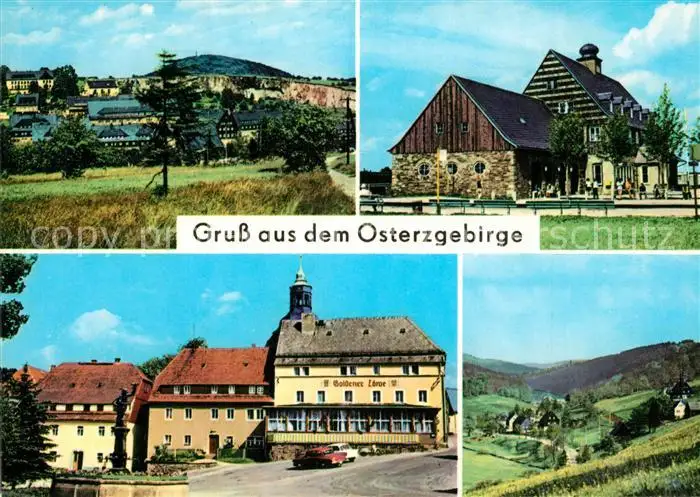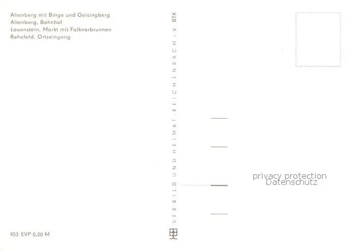 Altenberg_Erzgebirge Binge und Geisingberg Bahnhof Lauenstein Markt Falknerbrunnen Rehefeld Ortseingang Landschaftspanorama Altenberg Erzgebirge postalisch nicht gelaufen 1975 Erhaltung siehe scans [FriedD77] Frierer