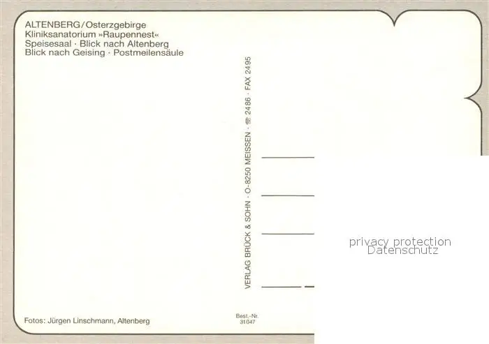 Altenberg_Erzgebirge Kliniksanatorium Raupennest Speisesaal Panorama Geisingblick Postmeilensaeule Altenberg Erzgebirge postalisch nicht gelaufen nach 1965 Erhaltung siehe scans [WerneD78] WernPID7