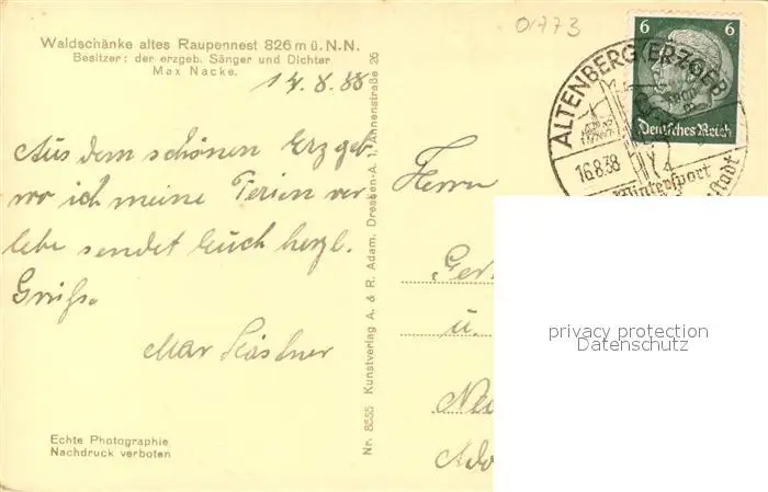 Altenberg_Erzgebirge Waldsch?nke altes Raupennest Altenberg Erzgebirge postalisch gelaufen 1938 Erhaltung siehe scans [LiesaD40] LiesID40