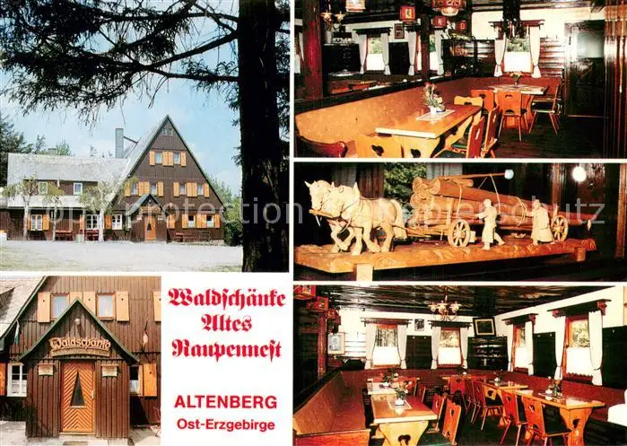 AK / Ansichtskarte Altenberg_Erzgebirge Waldschaenke Altes Raupennest Eingangstuer Gastraeume Holzschnitzerei Altenberg Erzgebirge