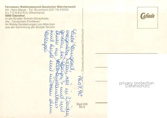 Altenberg_Rheinland Deutscher Maerchenwald Rotkaeppchen Waldrestaurant Altenberg_Rheinland postalisch nicht gelaufen 1980 Erhaltung siehe scans [FriedD77] Frierer