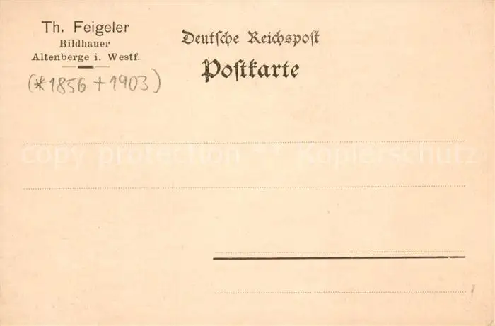 Altenberge_Westfalen Vordruckkarte Th. Feigeler Bildhauer Altenberge_Westfalen postalisch nicht gelaufen bis 1920 Erhaltung siehe scans [LiesaD40] LiesID40