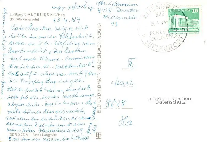 Altenbrak_Harz Altenbrak Harz postalisch gelaufen 1984 Erhaltung siehe scans [LiesaD40] LiesID40