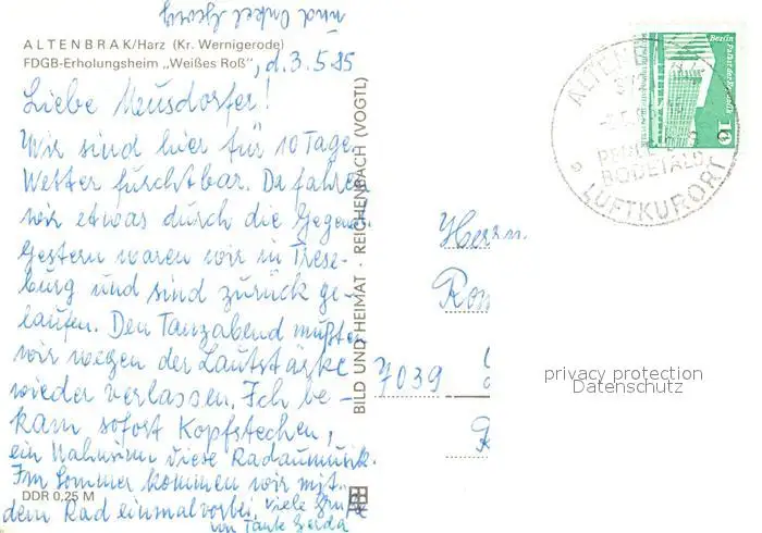 Altenbrak_Harz FDGB Erholungsheim Weisses Ro Altenbrak Harz postalisch gelaufen 1985 Erhaltung siehe scans [LiesaD40] LiesID40
