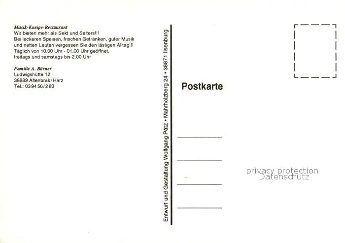Altenbrak_Harz Restaurant Musik-Kneipe Zur Schoeneburg Altenbrak Harz postalisch nicht gelaufen nach 1965 Erhaltung siehe scans [LiesaD40] LiesID40