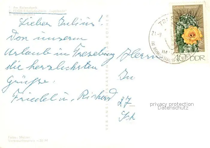 Altenbrak_Harz Rolandseck FDGB Erholungsheim Luppbode Waldbergbad Badestrand Altenbrak Harz postalisch gelaufen nach 1965 Erhaltung siehe scans [FriedD77] Frierer