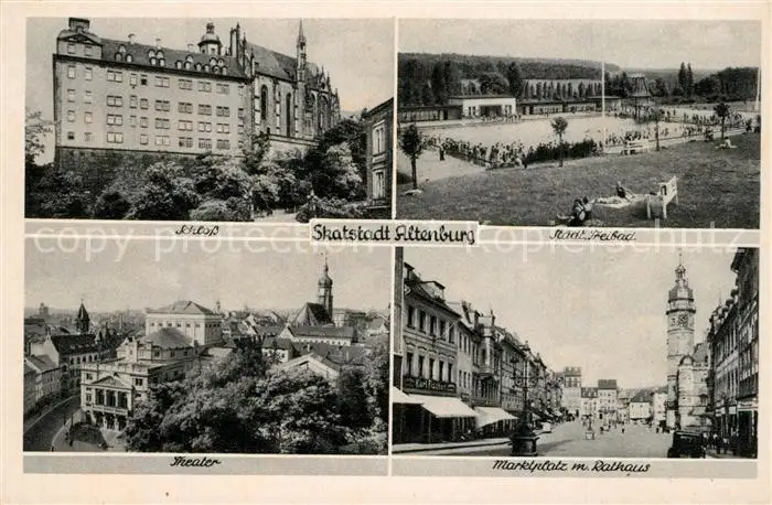Altenburg_Thueringen Schloss Staedt Freibad Theater Marktplatz mit Rathaus Altenburg Thueringen postalisch nicht gelaufen 1942 Erhaltung siehe scans [WerneD78] WernPID7