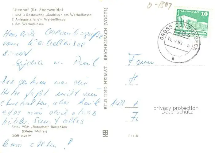 Altenhof_Werbellinsee Restaurant Seeblick Anlegestelle Bootsliegeplatz Altenhof Werbellinsee postalisch gelaufen 1983 Erhaltung siehe scans [WerneD78] WernPID7