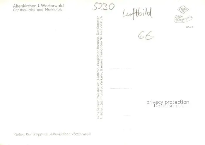 Altenkirchen_Westerwald Christuskirche mit Marktplatz Fliegeraufnahme Altenkirchen_Westerwald postalisch nicht gelaufen nach 1965 Erhaltung siehe scans [WerneD78] WernPID7